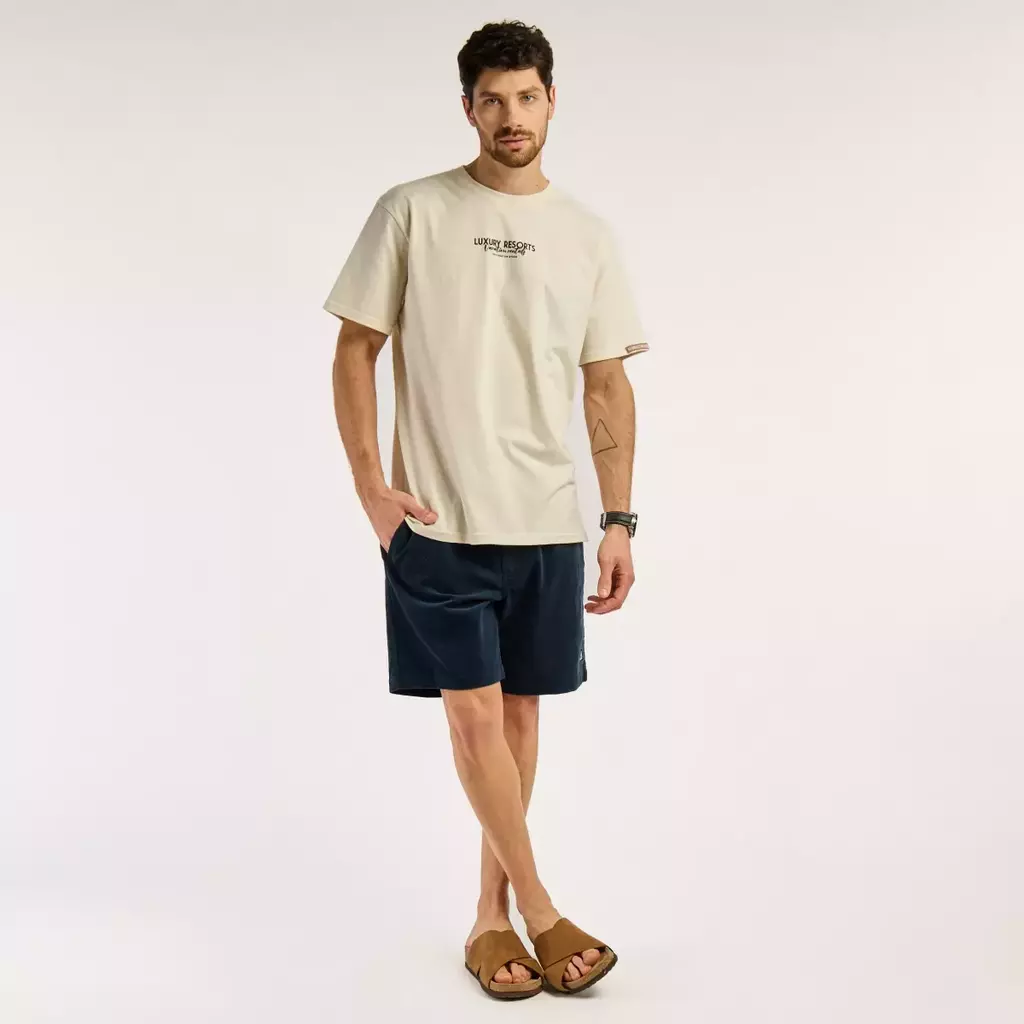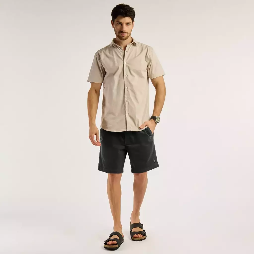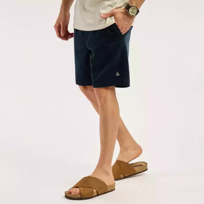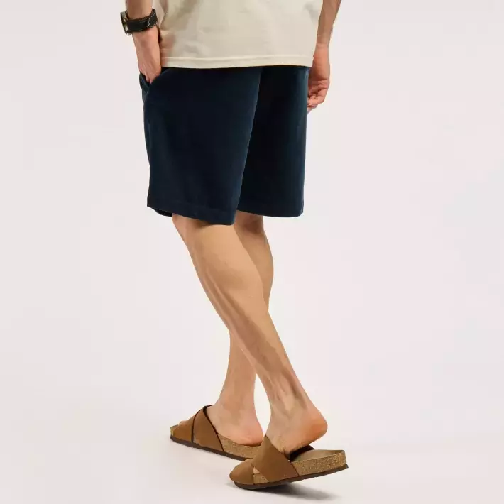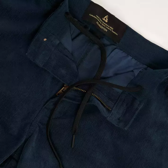 Bolsillos delanteros en diagonal y posteriores tipo ojal con botón.