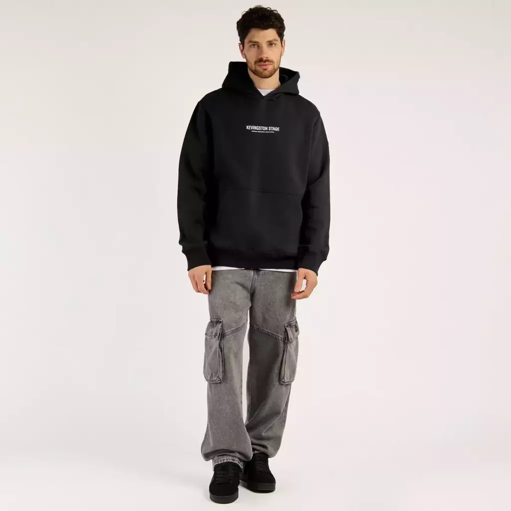 Buzo con capucha y bolsillo canguro de calce relajado. Confeccionado en jersey frisado, puños y cintura en ribb con capucha forrada.