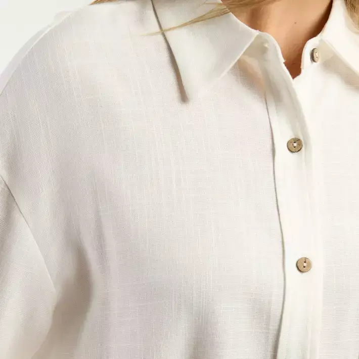 Camisa manga larga confeccionada en lino y algodón.