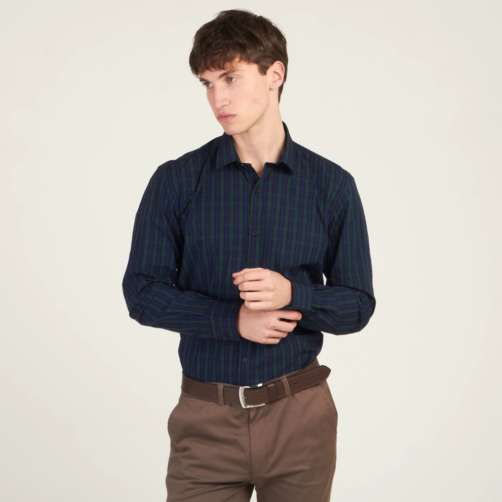 Camisa escocesa manga larga realizada en poplín, un tejido de algodón de excelente calidad, que se caracteriza por su mayor cantidad de hilos, resultando una tela suave y al mismo tiempo estable.
