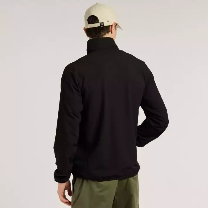 El diseño del cuello permite el guardado de la capucha realizada en microfibra 100% náilon.