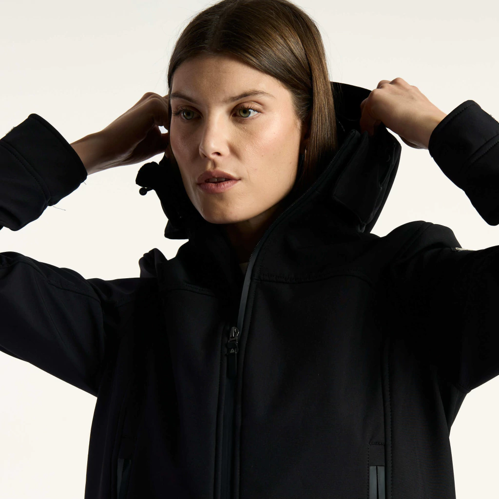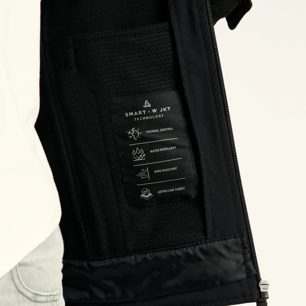 Campera realizada en tejido elastizado tricapa resistente al viento, repelente al agua, con secado rápido y altamente transpirable e con interior en textil tipo polar. Cuenta con cierres con recubrimiento de PVC resistentes al viento e impermeables. Bolsillo delantero con ribete en tela base. Puños y cintura ajustables permiten una mayor conservación del calor. Capucha desmontable con detalle de cordon y puntera a tono. Bolsillos internos portavalores. La reconocida campera Smart, pero adaptada como producto para mujer. Es la campera todo terreno que necesitas: para la ciudad un día lluvioso, para hacer deporte o como capa extra para un día con baja temperatura.