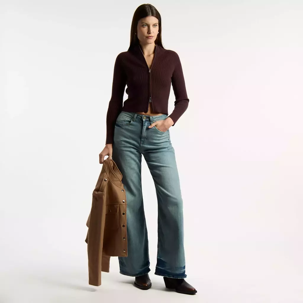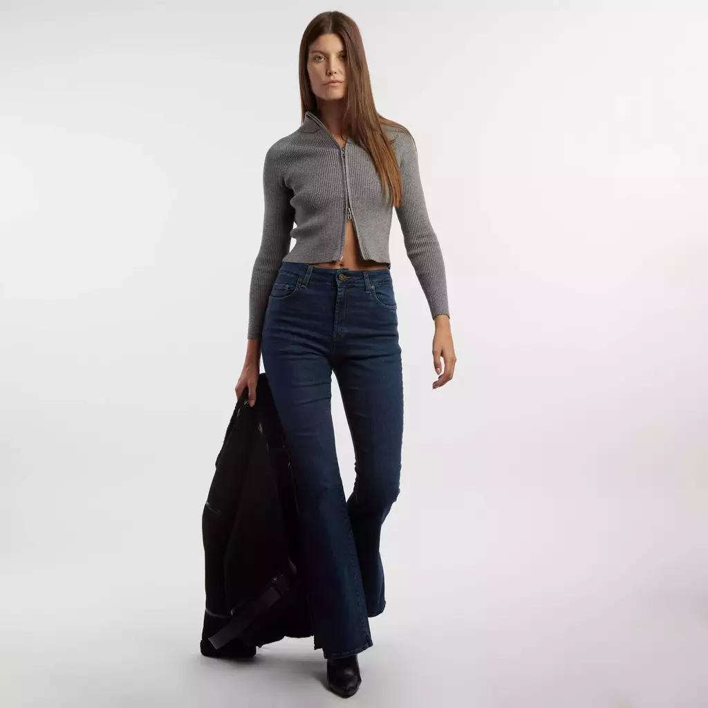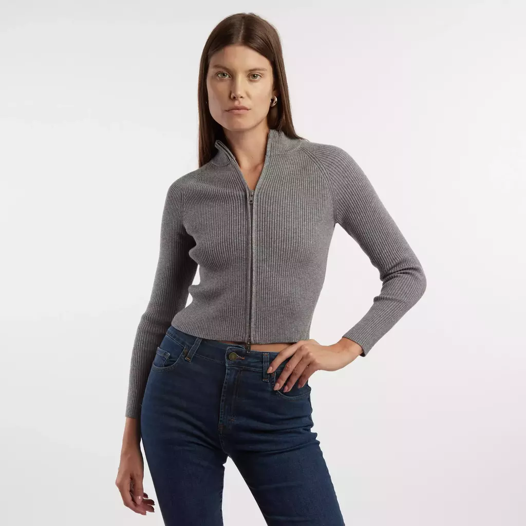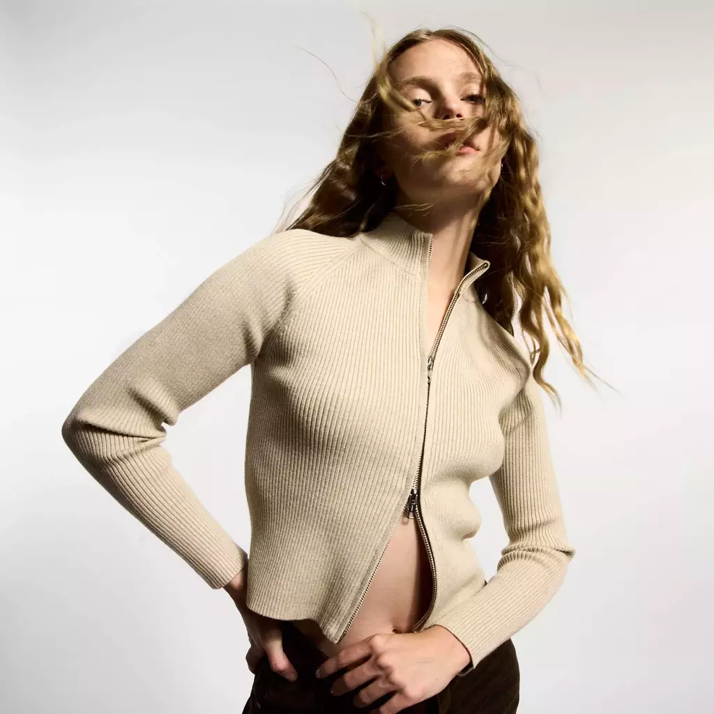 Cardigan tejido de calce anatomico escote redondo con cuello alto y diseño de canelon fino. Posee cierre desmontable doble camino con baño color niquel y medalla marcaria en espalda. Confeccionado con hilado suave el diseño de este articulo permite que lo utilices como un cárdigan con cierre común o jugar con los deslizadores para que quede una prenda completamente diferente.
