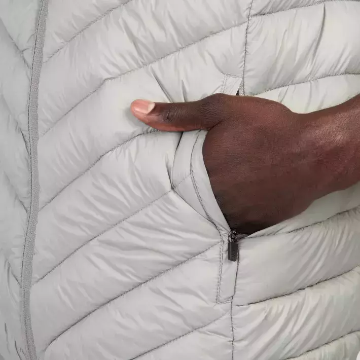 Chaleco realizado en microfibra mini ripstop con recubrimiento repelente al agua, columna 1.000 mm.