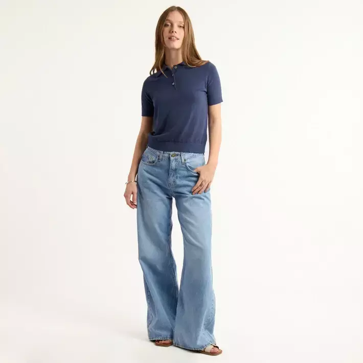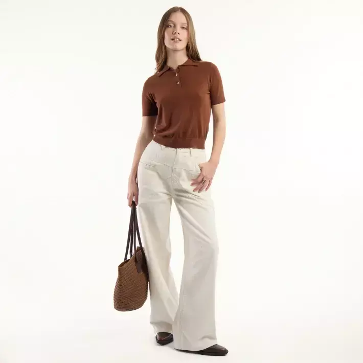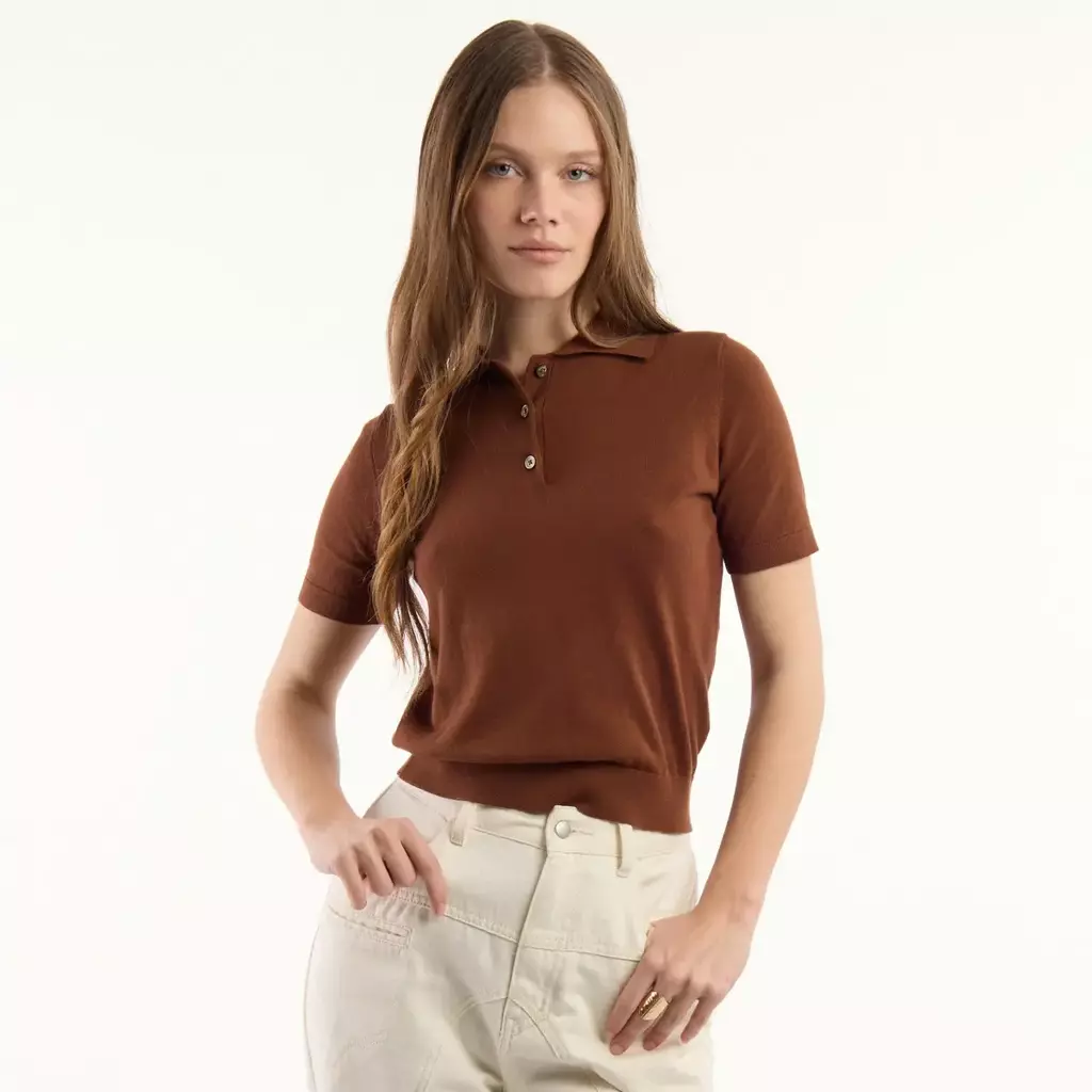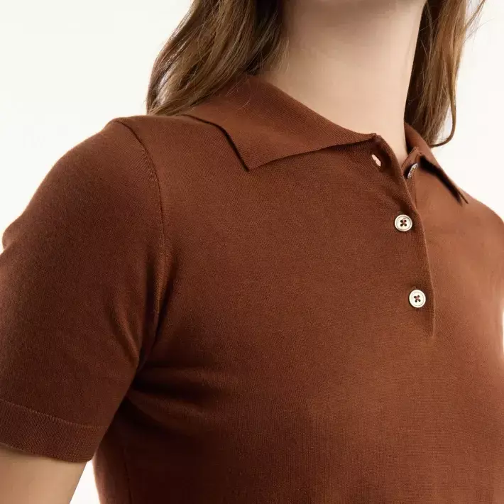 Chomba polo manga corta con botones de pasta con terminación nacarada en el frente. Confeccionada en algodón.