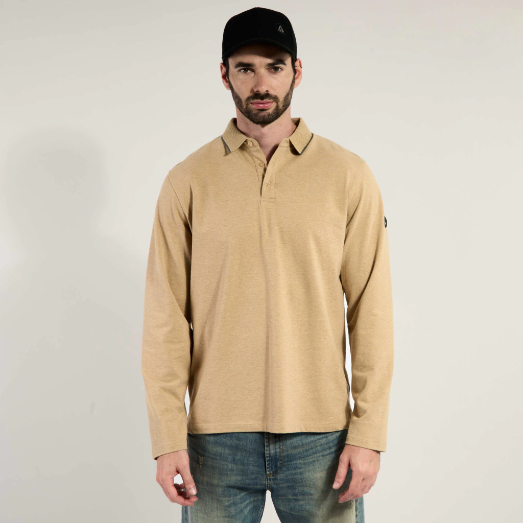 Chomba polo manga larga en piqué de algodón con elastano de 220 grs.
