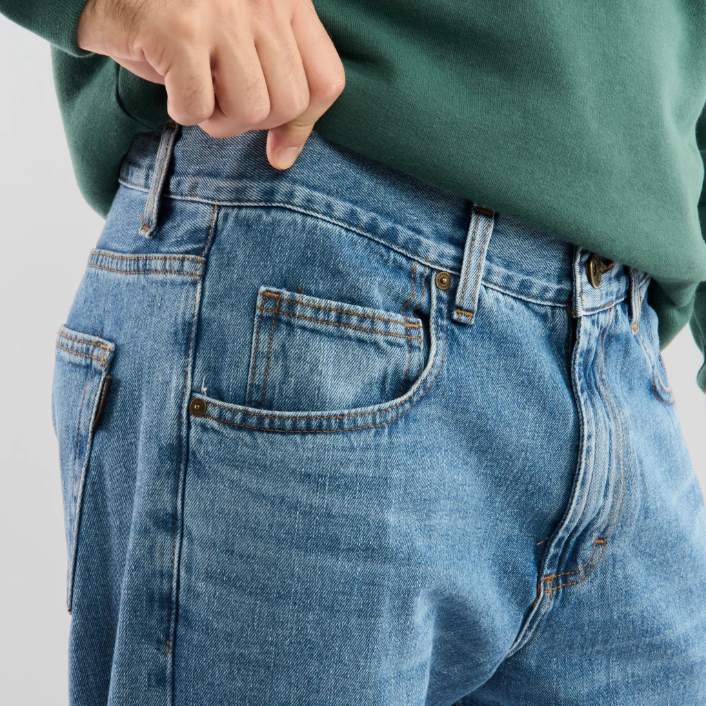 Su lavado se destaca por su color índigo, con desgaste de color en costuras y boca de bolsillos.