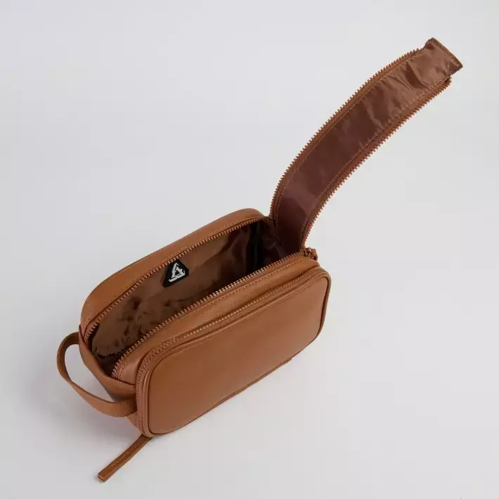 Perfecto para viajes o uso diario, combina durabilidad y un acabado sofisticado, siendo una opción sostenible.
