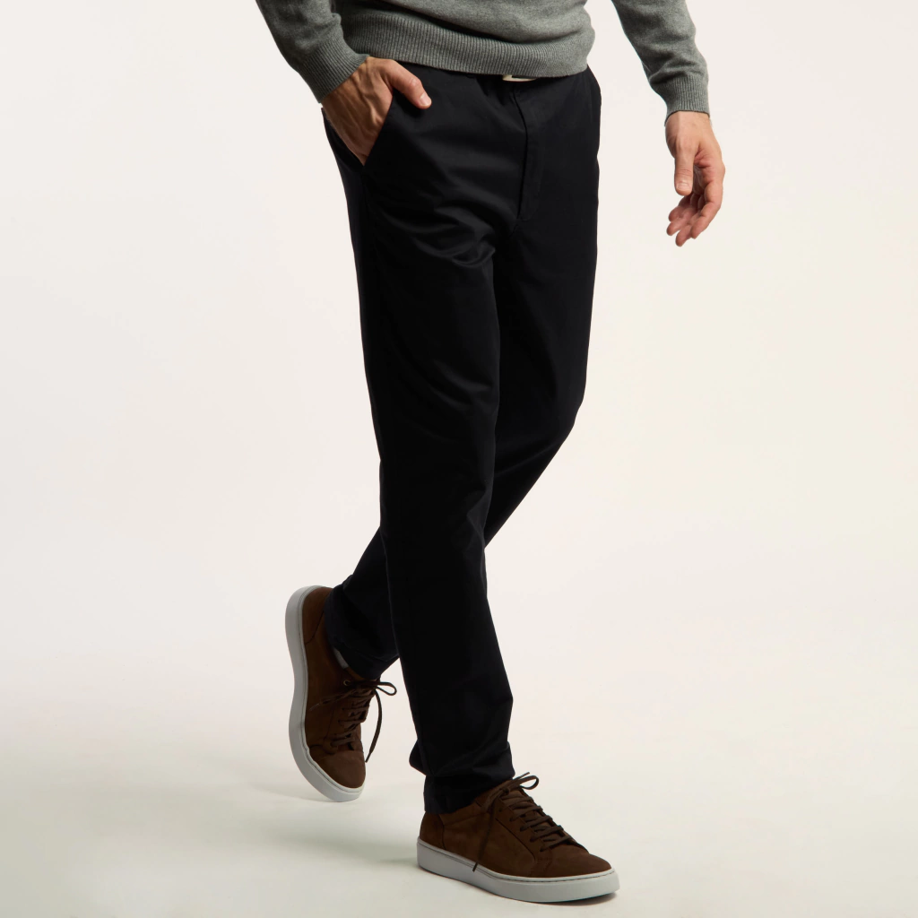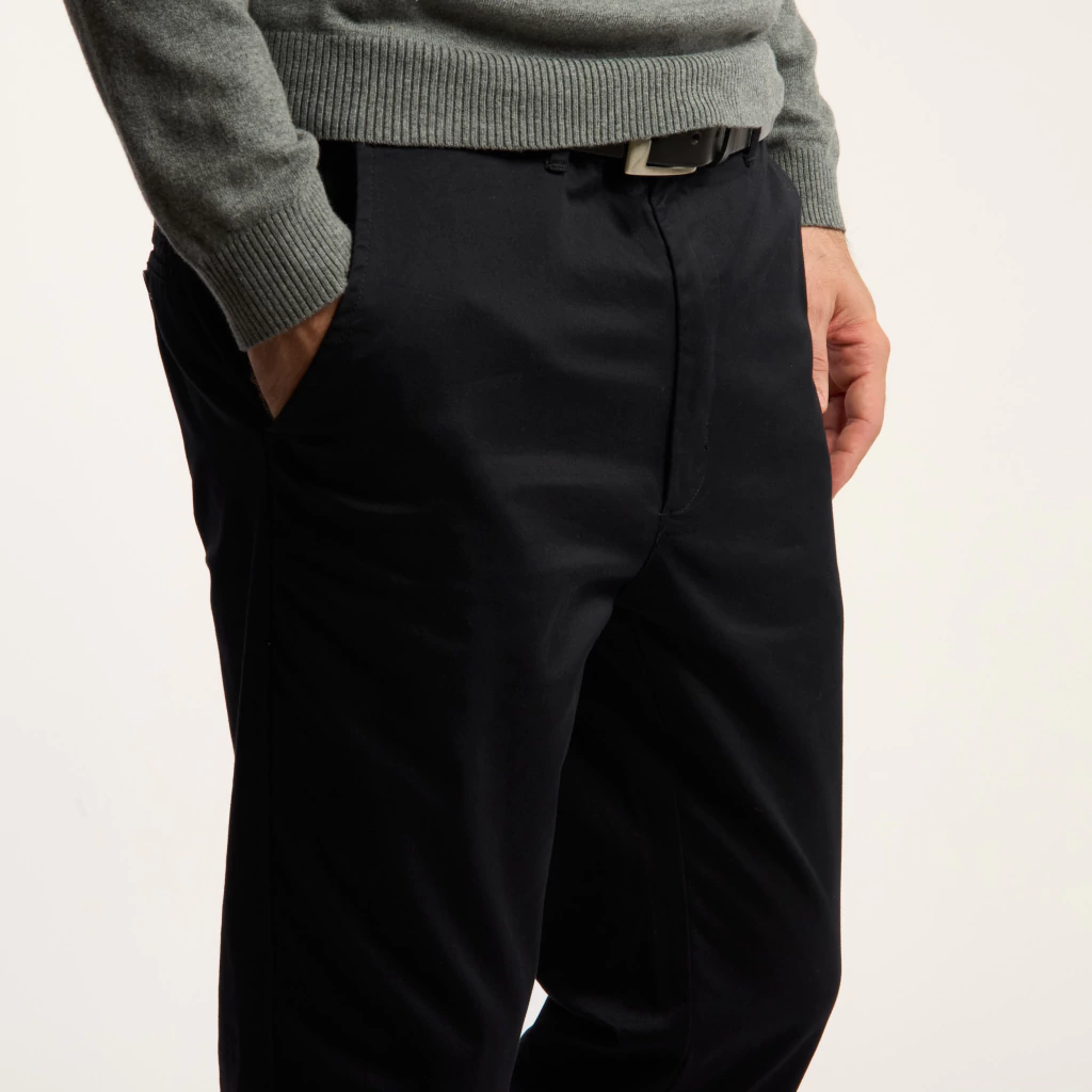 Pantalón de gabardina elastizada tipo chino sin pinzas.