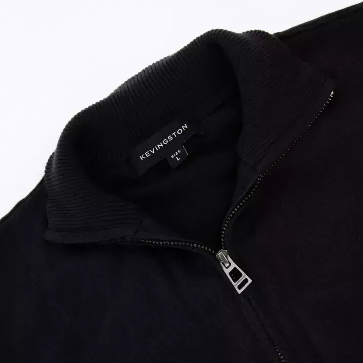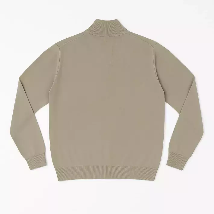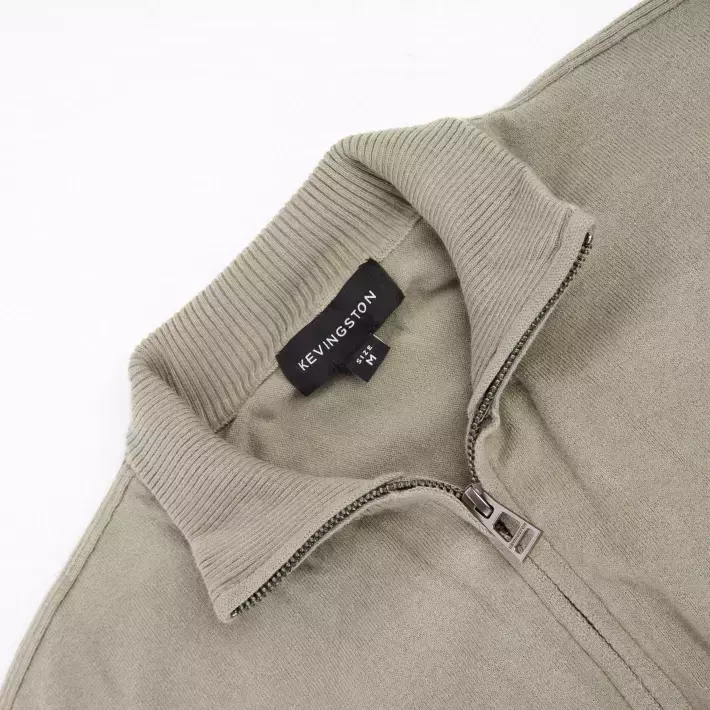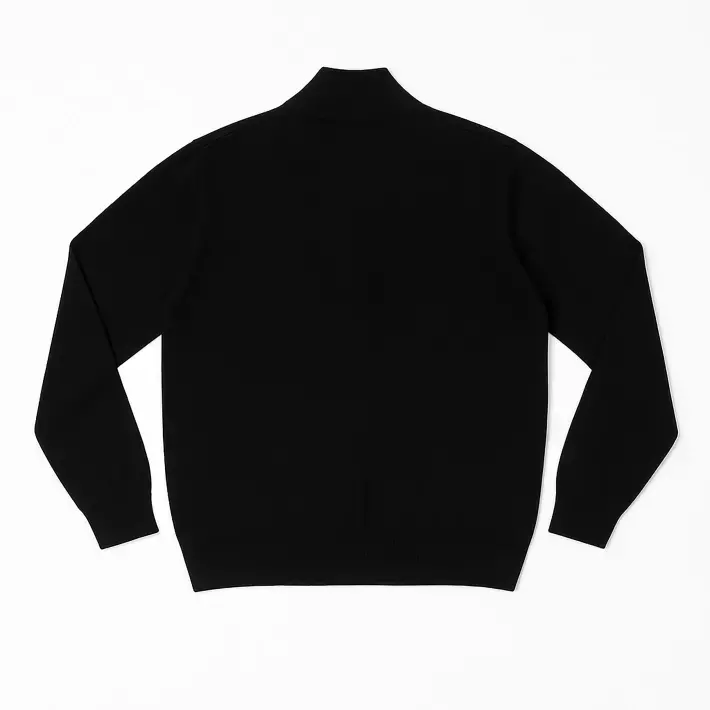 Sweater medio cierre realizado en un hilado blend ligeramente elastizado y muy versátil.