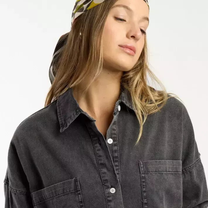 Vestido camisero confeccionado en denim liviano. De calce holgado, sumale cinturón para un look ideal.